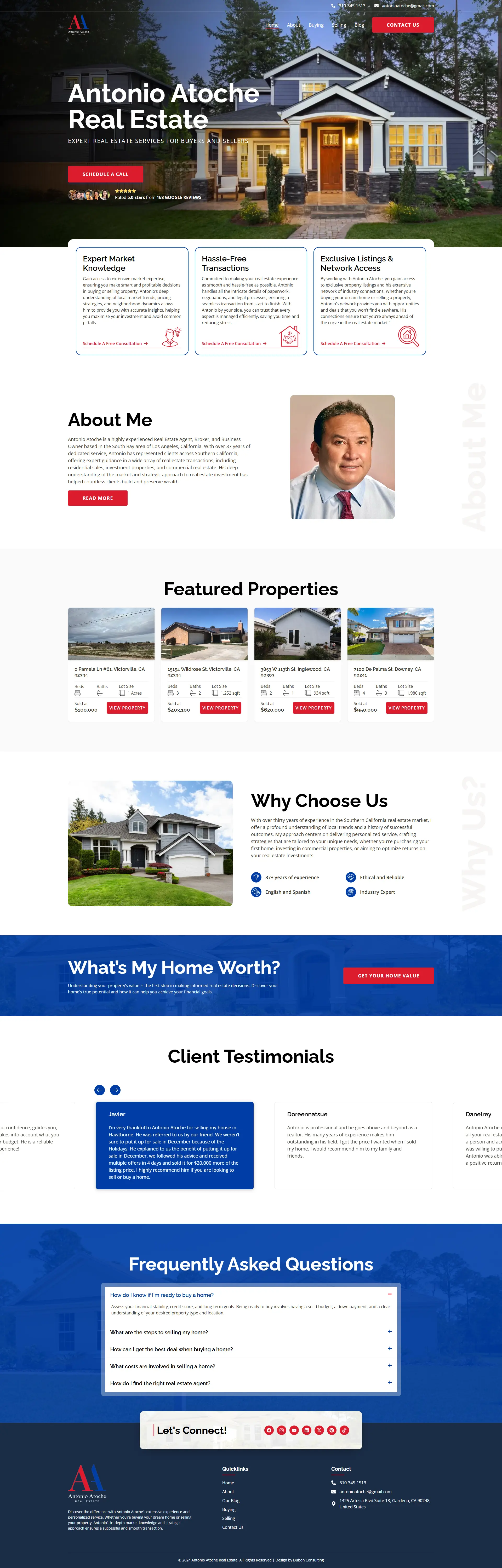 This project involved developing a professional website for real estate broker Antonio Atoche to strengthen his personal brand and generate property inquiries online. The website was structured with clear messaging, property-focused content sections, and strategic calls-to-action designed to guide visitors toward contacting the broker or exploring available listings. A clean, modern layout and mobile-responsive design ensure a smooth experience for users browsing properties on any device. The result is a professional real estate platform that builds trust while supporting lead generation for property buyers and sellers.